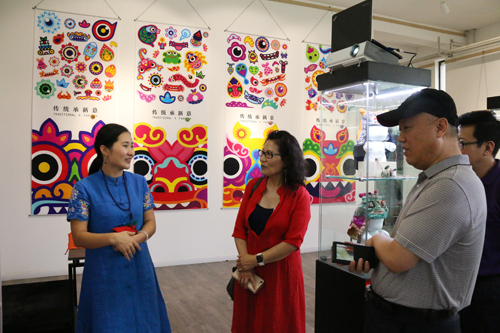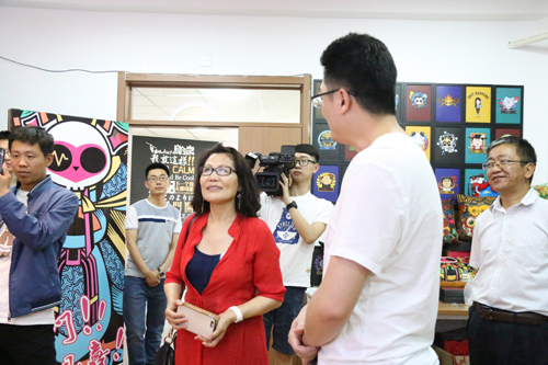 座谈会前,杨莉总裁一行参观了我校认知实验室、“无交互,不设计”2016届电艺专业毕业作品展、“古意新潮”展和文化科技园。