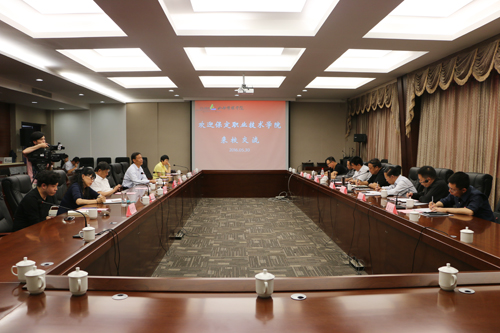 5月30日下午,保定职业技术学院党委书记李绍祥、院长霍新怀一行7人来校交流座谈。党委书记张汉静主持座谈,院长王建国及有关部门负责人参加。