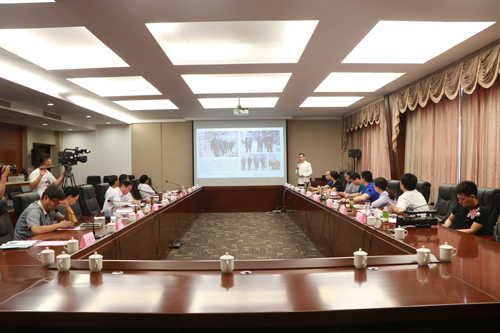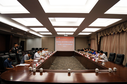 我校艺术设计系副主任申明远教授向来宾汇报了品牌设计合作案例。随后,双方就文化旅游合作(精准扶贫)项目有关情况进行了深入交流。