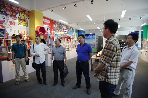 洽谈会结束后,祝向阳处长、杨辉部长一行参观了我校认知实验室、“品牌良方”设计展、“无交互,不设计”2016届电艺专业毕业作品展、“古意新潮”展和文化科技园。