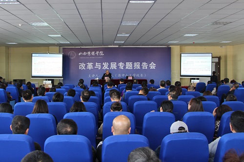 4月7日下午,中山大学原校长黄达人教授应邀来校作了题为《关于大学内涵建设的一些思考》的学术报告。党委书记张汉静主持报告会,院长王建国、党委副书记王俊刚、副院长王新塘、副院长武升平、纪委书记梁云阶及科级以上干部、各教研室主任和副高以上职称教师认真听取了报告。