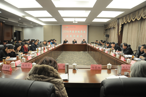 2月26日,学院党委召开2016年发展务虚会。党委书记张汉静,党委副书记、院长王建国作重要讲话。党委副书记王俊刚、副院长王新塘、副院长武升平、纪委书记梁云阶分别就分管工作作了总结和部署。
