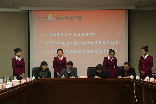 张汉静书记、王建国院长与各部门主要负责人签订《2016年度部门目标责任书》、
