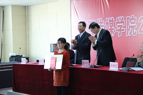 之后,大会对2015年度获得省级以上荣誉称号的先进个人、2014-2015学年国家奖学金获得者、“中广电”奖教金获得者、“中广电”奖学金获得者、教学突出贡献奖、科研成果获奖代表、创作成果国际级获奖代表和青年教师创作大赛获奖代表进行了表彰。