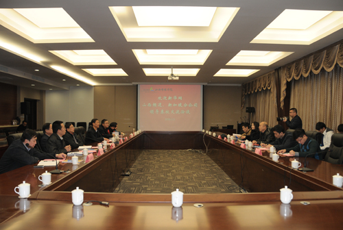 之后,双方就具体合作事宜进行交流。座谈会结束后,高风总经理一行在王建国院长的陪同下参观了学院文化科技园。