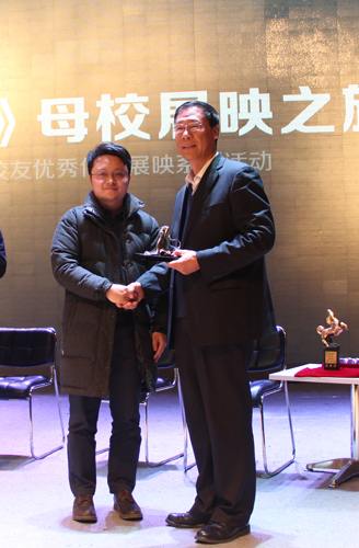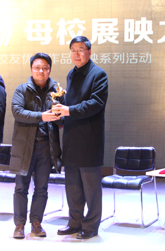 为了表彰毕赣和《路边野餐》创作团队王天行、肖肖、孙辉、刘钊、杜俊霖、贺文强、梁凯等取得的佳绩,张汉静书记代表学院为他们颁发了“杰出校友”荣誉证书。毕赣亦将“金马”与“银豹”两座奖杯赠予母校,以表达对母校培养和支持的感谢。
