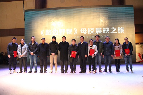 之后,王建国院长发表讲话,对《路边野餐》创作团队和毕赣本人屡获国内外大奖表示祝贺。他指出,这些成绩的取得既是业界对电影作品、对创作团队的肯定,也是对我校人才培养模式的肯定。除《路边野餐》之外,我校师生作品还先后在法国、韩国、俄罗斯、北京、上海、四川等地荣获多项大奖,被业界专家誉为“山传现象”。希望同学们以《路边野餐》创作团队为榜样,在校期间认真学习,练好基本功,积极参与各种创作活动,用优秀作品展现学习成果展现当代大学生的精神风貌;希望《路边野餐》创作团队再接再厉,以繁荣文化产业为己任,为观众带来更多更好的作品;希望校友常回母校看看,为学弟学妹传经送宝,为母校发展建言献策。