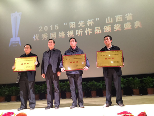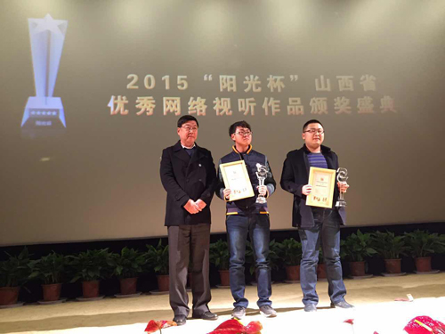 11月27日,2015“阳光杯”山西省优秀网络视听作品评选活动颁奖典礼在省城太原举行,我校学生创作的《春泥》《守望》《小雨》《车轮下的青春印记》《嗨!小鬼》等五部作品获最佳短片等奖项、学校获优秀组织单位。省新闻出版广电局副局长安洋、我校党委书记张汉静、省电影家协会副会长杨志刚、省广电协会秘书长段晋峰、山西互联网研究中心主任齐海舜等出席典礼并为获奖单位和个人颁奖。