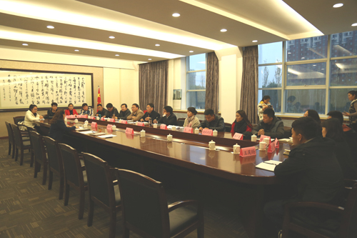 工作汇报会在第一会议室举行。创建检查组成员山西财经大学宣传部部长高建军、运城学院宣传部部长荆飘丝、山西医科大学宣传部主任科员侯小宝、学院党委副书记王俊刚、纪委书记梁云阶、副院长王新塘及学院各部门主要负责人参加。