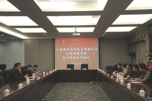 10月23日上午,我院与山西逸典文化艺术有限公司签订战略合作协议。山西逸典文化艺术有限公司总经理李学红、副总经理郝霆、我院院长王建国、副院长王新塘、副院长武升平出席,山西逸典文化艺术有限公司和我院有关部门负责人参加。