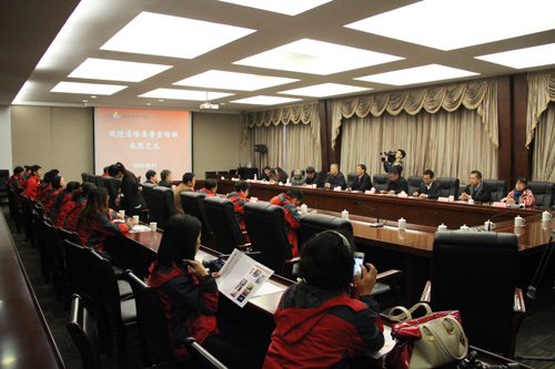 10月27日下午,清徐县委常委、宣传部部长王耀武带领清徐报社、新闻中心、清徐电视台中层以上干部来院交流并座谈。院长王建国以及学院办公室、宣传部、教务处、学生处、工会、编导系、制作系、播音主持系等有关部门主要负责人参加。座谈会由学院党委副书记王俊刚主持。