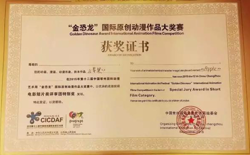 动画作品《苹果》获“金恐龙”国际原创动漫作品大奖赛电影短片类评审团特别奖
