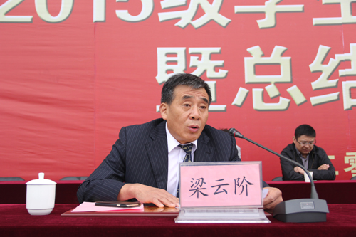 纪委书记梁云阶宣读了《关于表彰2015级学生军训优秀集体、先进个人的决定》,对军训优秀班级、内务优秀宿舍、军训先进个人进行表彰。
