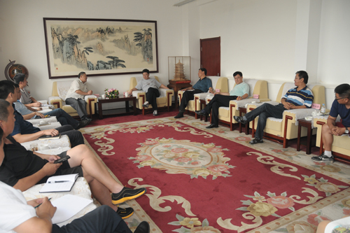 8月19日,中国大学生体育协会教育部学生体育协会联合秘书处秘书长杨立国、中国大学生体育协会专职副主席、副秘书长薛彦青、中国大学生体育协会专职副主席张磊等一行四人来院座谈交流。学院党委书记张汉静、院长王建国、副院长王新塘及学院办公室、影视制作中心、信息中心、资产处等有关部门负责人参加。