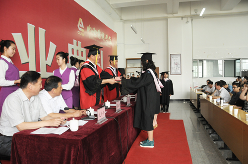王新塘副院长宣布了2015届本科毕业生毕业、结业情况,王建国院长、张民杰部长向取得毕业资格的同学颁发毕业证书。