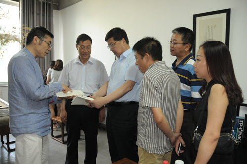 6月5日下午,学院党委书记张汉静、院长王建国深入艺术设计系调研。学院办公室主任韩永清,艺术设计系主任孙立军、副主任申明远、党总支副书记高宇宏陪同调研。