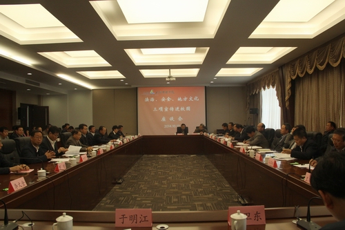 为进一步提升高校大学生的法制观念、安全意识和地方文化素养,促进市校深度融合发展,10月17日下午,晋中市委、市政府与省高校新校区十所高校联合开展以共建“平安、和谐、活力新校园“为主题的法制、安全和地方文化三项宣传教育进校园活动,活动启动仪式在我院举行。晋中市委书记张璞,省教育厅党组成员、省高校工委副书记李忠人,晋中市委副书记刘志宏,我院副院长武升平及晋中市级领导、晋中市有关单位负责人、太原理工大学、山西医科大学等其他九所高校领导参加活动启动仪式并座谈。