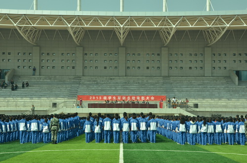 9月29日上午,2013级新生军训总结表彰大会在学院体育场隆重举行。学院领导班子成员、各部门负责人和承担军训任务的66075部队官兵参加了大会。
