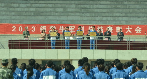 武升平副院长宣读了《关于表彰2013级学生军训优秀集体、先进个人的决定》,对军训优秀班级、内务优秀宿舍、军训先进个人进行表彰。