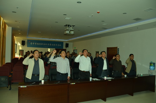 参观之后,参加学习的党员干部在多功能报告厅重温入党誓词。
