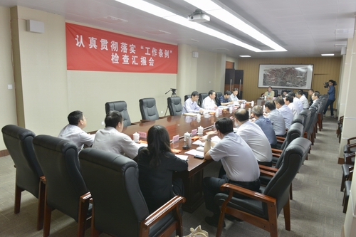李远程书记对检查组的莅临指导表示欢迎,并对检查组领导长期以来对学院工作的支持表示感谢。王俊刚副书记代表学院党委汇报贯彻落实《条例》情况、重点思考的问题以及下一步的打算。检查组组长刘玉平做了小结,对我院《条例》贯彻落实情况给予肯定,并就可能出现的问题提出指导意见。