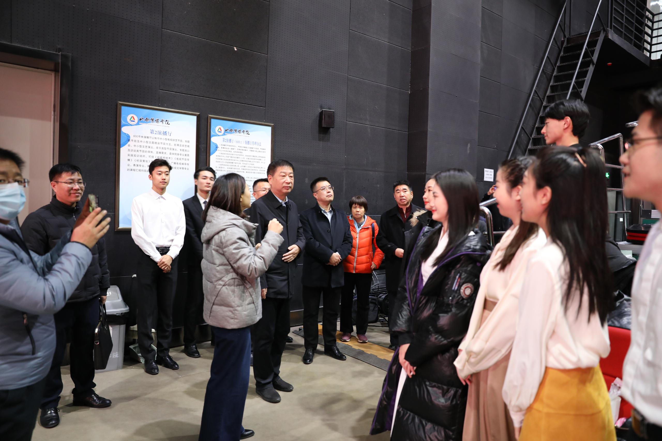 集中交流结束后,郭卫东陪同张长青、姜俊兵一行实地考察了演播实训中心、认知实验室、“一人一品”作品展和校史馆,双方相关部门负责人进行了对口交流。
