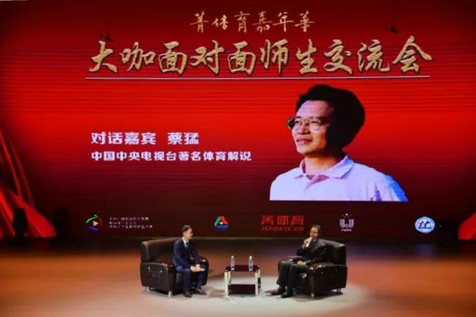 12月21日晚,菁体育嘉年华大咖面对面师生交流会在我校演艺中心600平方米演播厅举行,央视著名体育解说员蔡猛受邀参加,并作为对话嘉宾与师生们交流分享了他的工作经验和心得。