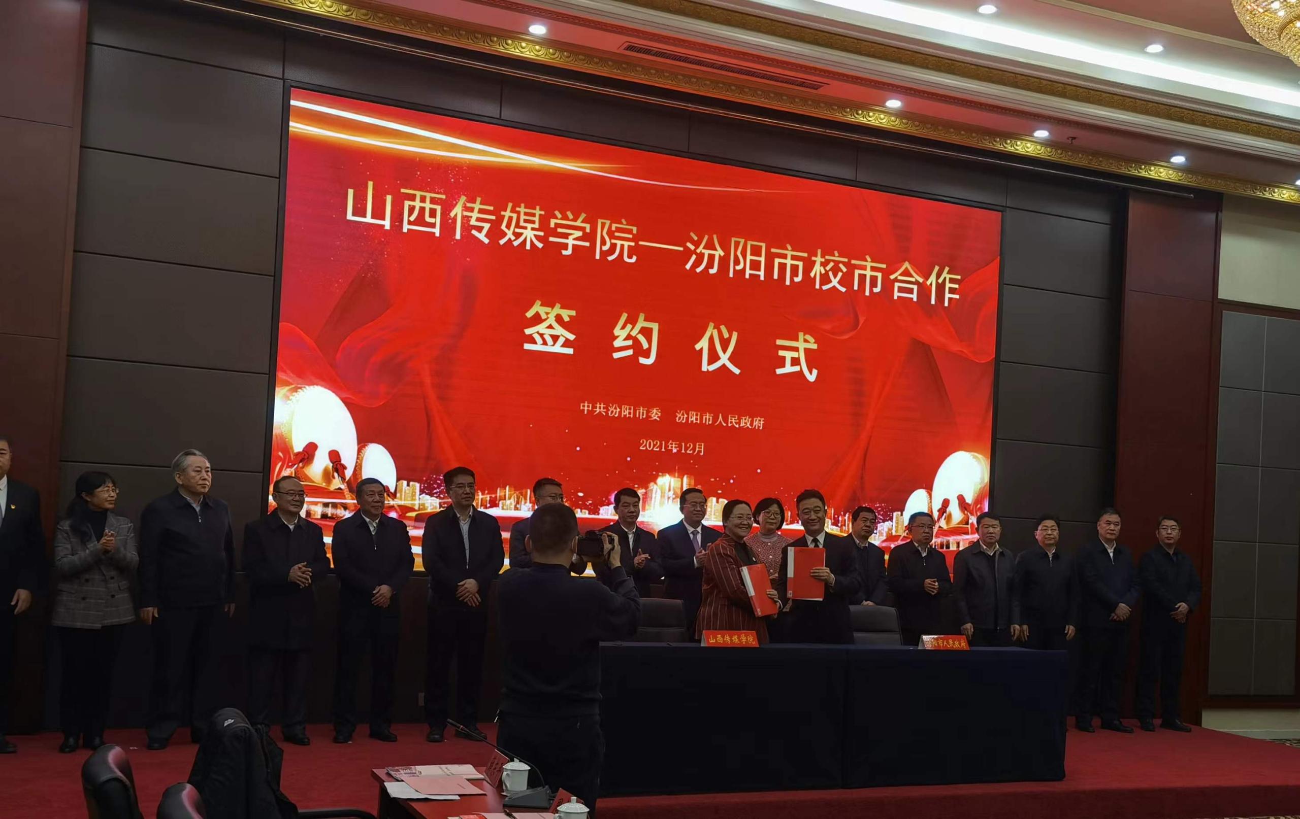 12月15日,我校应邀参加汾阳市“线上+线下”校市合作推进会,并与汾阳市签署战略性合作框架协议。党委书记吴刚、副校长王红叶、办公室主任赵海涛参加了推进会。