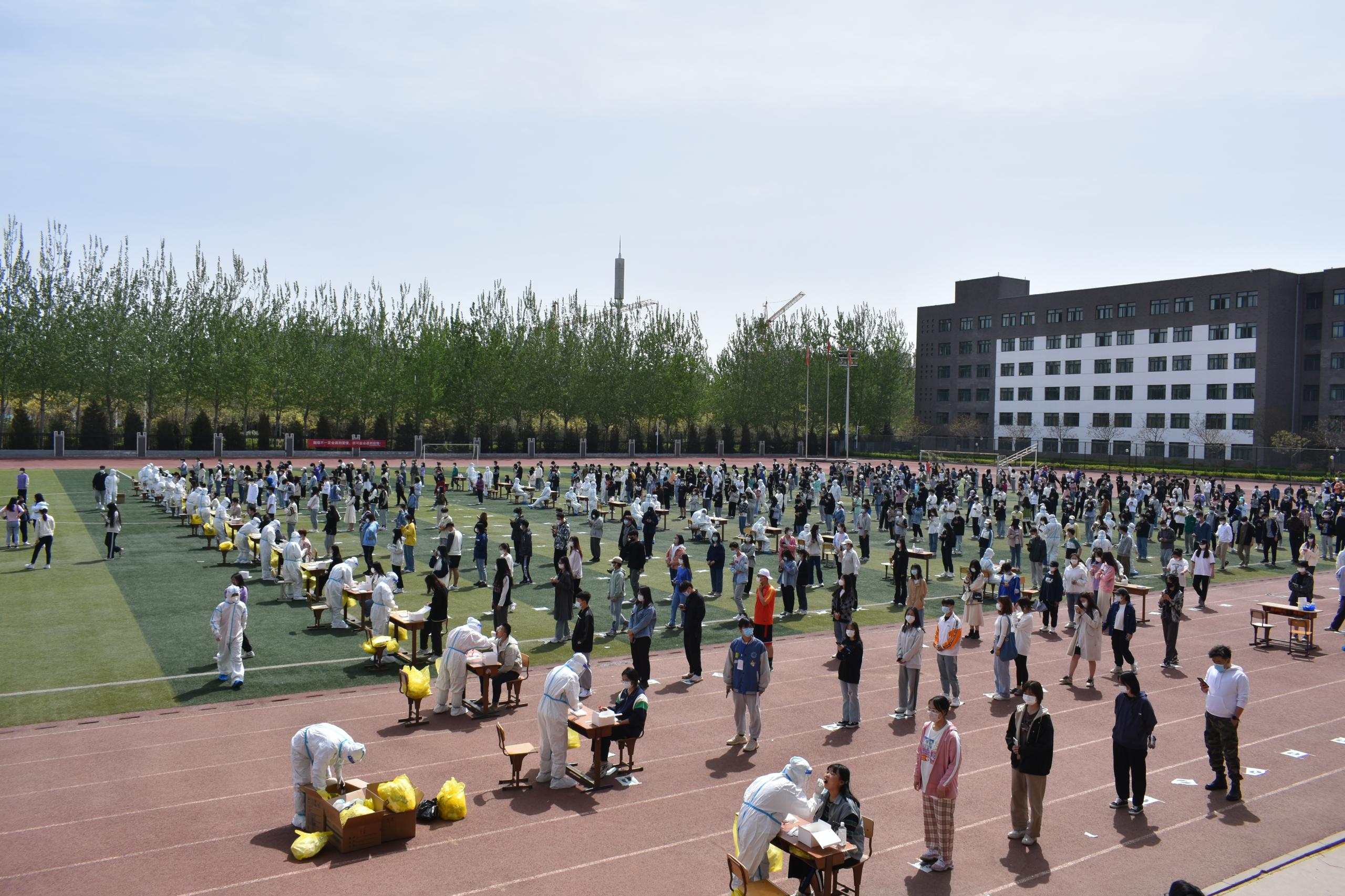 为进一步加强学校疫情防控工作,提升应急处置能力,切实保障广大师生的身体健康和校园安全,4月12日,我校在风雨操场开展全员核酸检测应急演练。