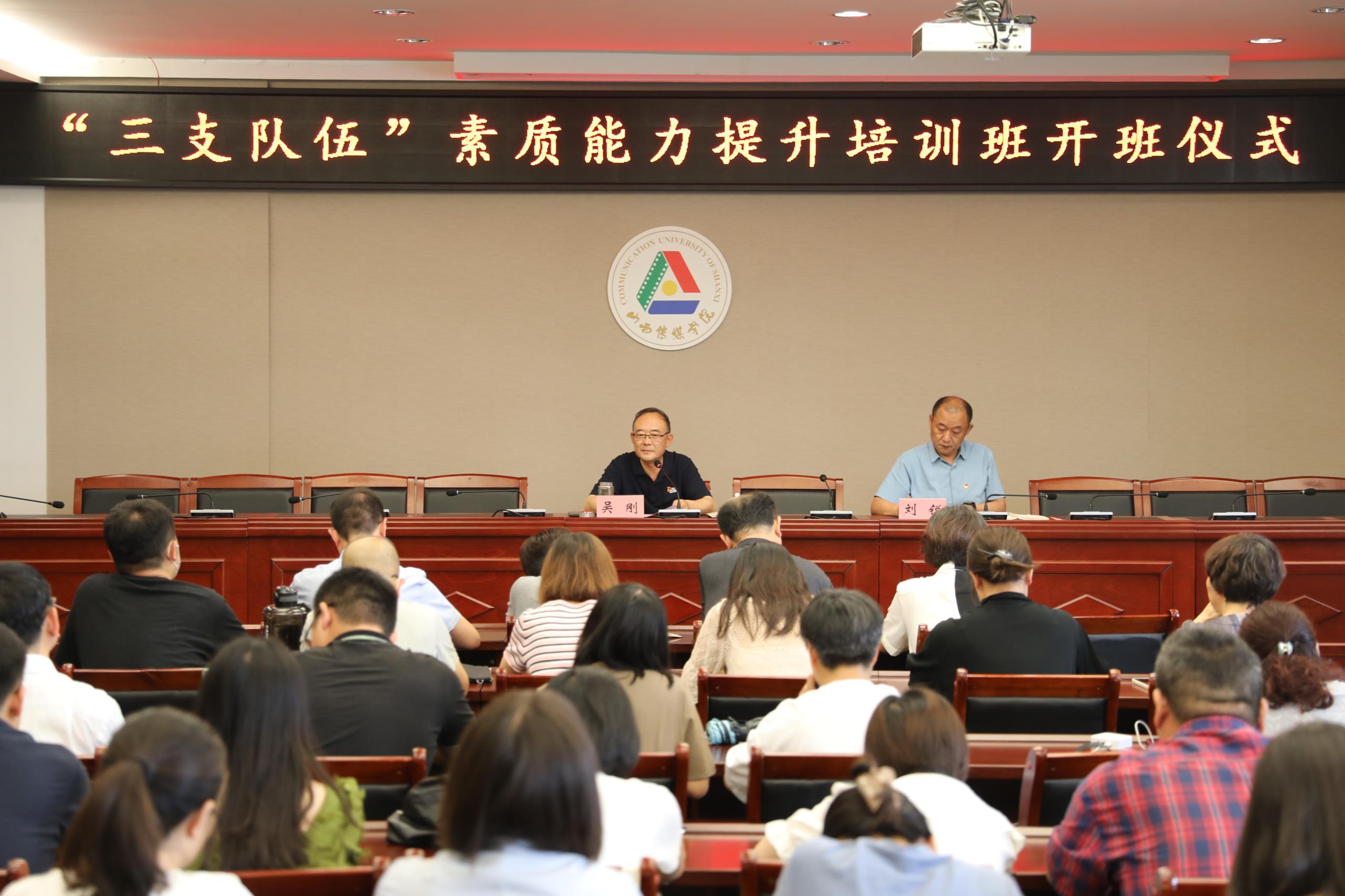 6月17日上午,我校举行“三支队伍”素质能力提升培训班开班仪式,校党委书记吴刚出席并作动员讲话,校党委副书记刘锐主持会议。党委组织部、党委宣传统战部、学生工作部、思政部主要负责人,全体专职思政课教师、专职组织员、专职思想政治辅导员参加会议。