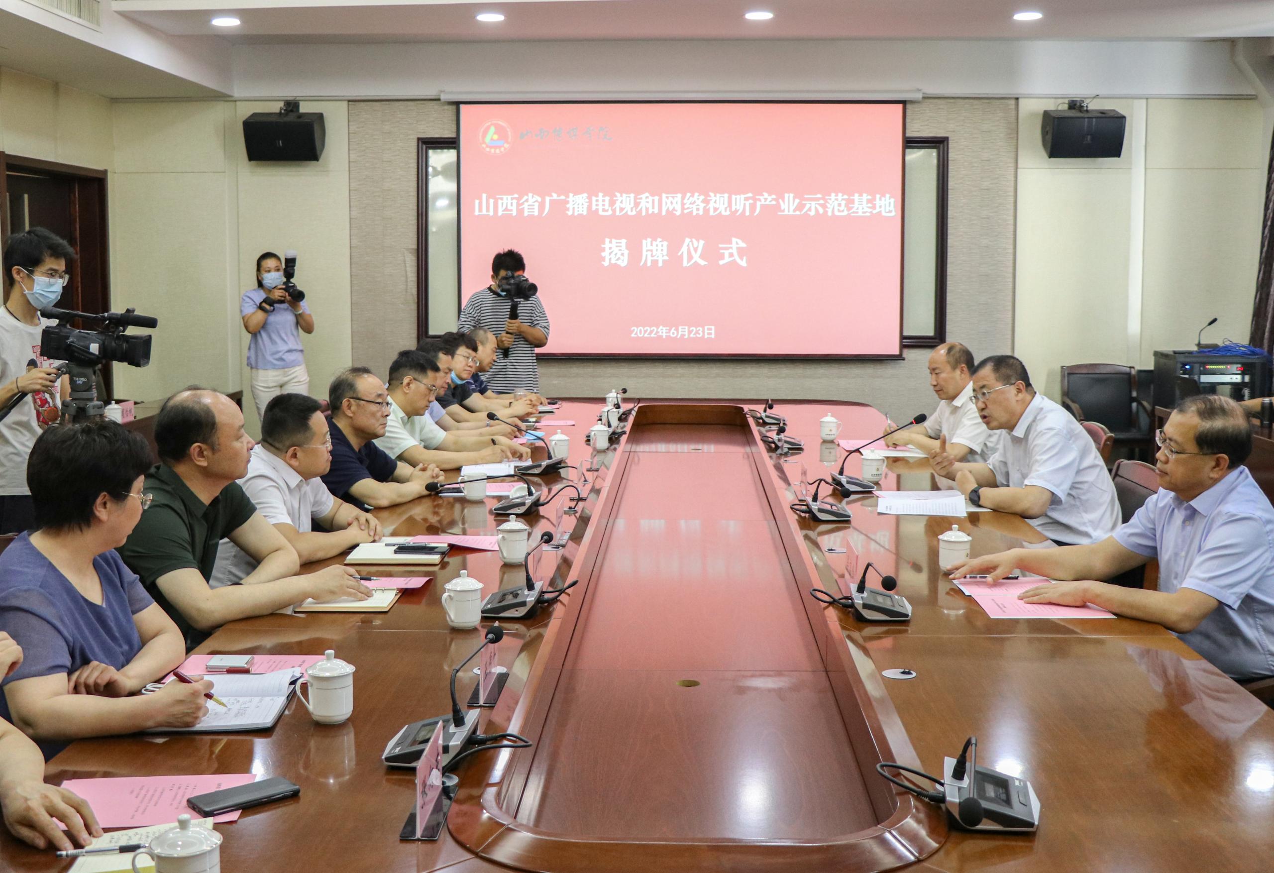 6月23日上午,山西省广播电视和网络视听产业示范基地揭牌仪式在我校隆重举行。山西省广播电视局党组书记、局长赵晓春等领导一行专程来到我校,校党委书记吴刚、校长李伟、副校长庞亮以及学校相关部门负责人参加了揭牌仪式。揭牌仪式由李伟主持。
