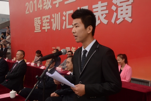 9月28日上午,2014级新生开学典礼暨军训汇报表演在学院体育场隆重举行。学院院长王建国、纪委书记梁云阶、副院长王新塘、副院长武升平、正院级调研员朱晓明,66016部队政治部副主任陈健中校出席,汇报表演由党委副书记王俊刚主持。学院各系主任、正教授职称教师和承担军训任务的66016部队官兵参加大会。学院向66016部队赠送了锦旗,表达了对官兵克服困难、努力搞好军训工作的谢意。