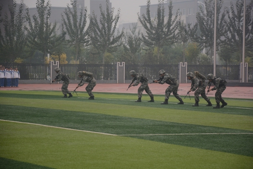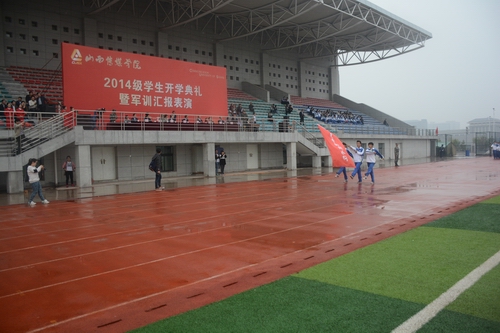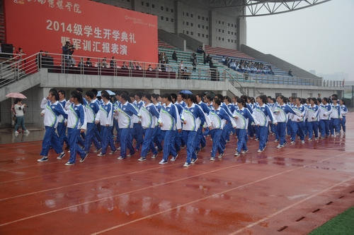 军训汇报表演中,2014级新生从迎校旗、阅兵式、分列式、队列表演、军体拳表演、学生应急防护自救表演、教官表演、唱军歌、送校旗等9个部分,汇报了此次的军训成果,表演高潮迭起,现场不时响起热烈掌声。