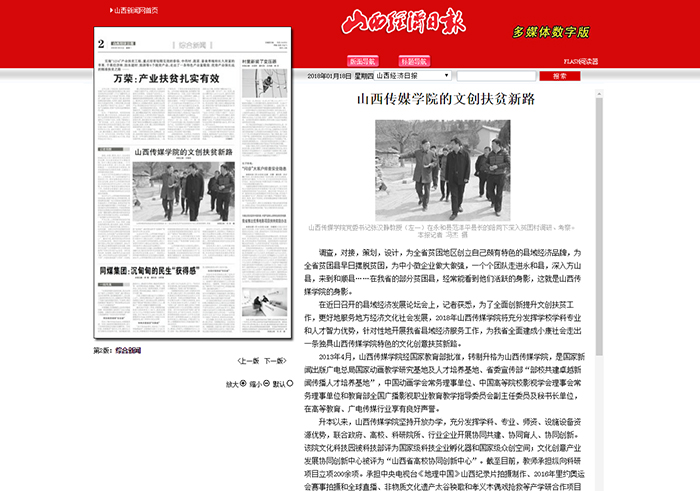 近日,山西经济日报以《山西传媒学院的文创扶贫新路》为题对我校精准扶贫工作进行宣传报道。