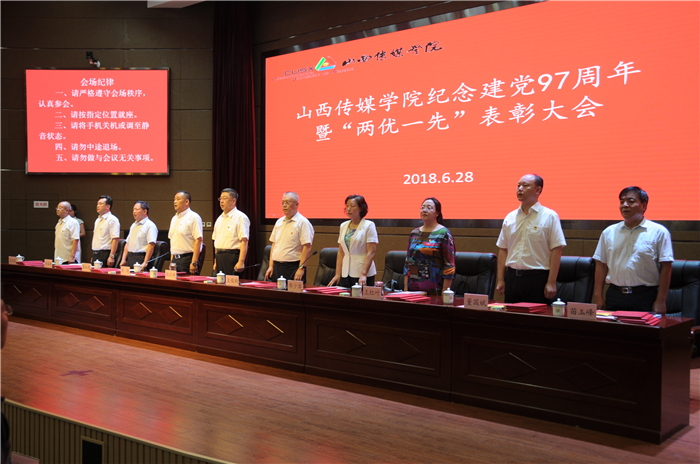 6月28日,我校在会议中心召开庆祝建党97周年暨“两优一先”表彰大会。校领导张汉静、王俊刚、刘锐、李少英、张永德、王红叶出席,党委委员赵海涛、董国斌、翟延东、苗玉峰在主席台上就坐。全体党员参加大会。大会由党委副书记刘锐主持。