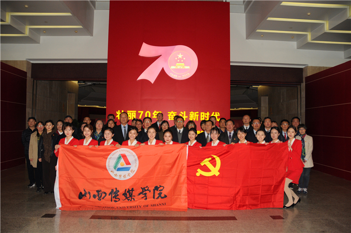 在山西博物院“壮丽70年 奋斗新时代——山西省庆祝中华人民共和国成立70周年图片展”,全体人员在由我校播音主持学院12名2017级学生组成的讲解员队伍的带领下,参观了“牢记嘱托”、“巨大变化”、“改革开放”、“逐梦奋进”四个展区,系统回顾了中华人民共和国成立70周年来山西革命、建设、改革波澜壮阔的伟大历程,习近平总书记视察山西的暖心画面,学习贯彻习近平总书记视察山西重要讲话精神的丰硕成果,山西改革发展的历史巨变,转型综改示范区新貌和能源革命的积极探索,一幅幅图片、一张张图表、一块块展板,给全体人员留下深刻印象。