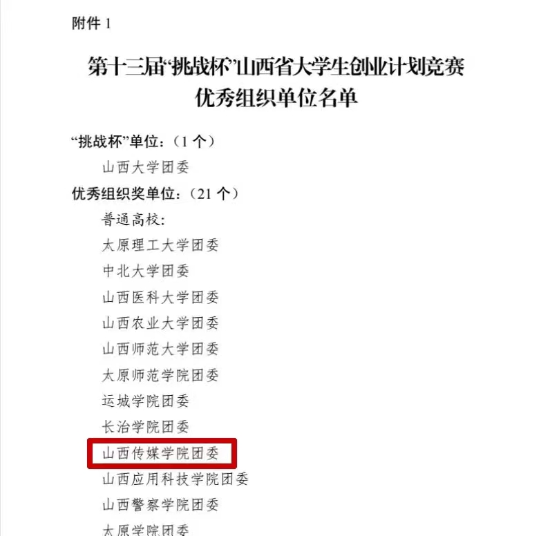 “挑战杯”大学生创业计划竞赛被誉为当代大学生科技创新的“奥林匹克”盛会,经过20余年的发展和积累,目前已成为国内参赛规模最大、影响范围最广的大学生创业赛事。山西省“挑战杯”大学生创业计划竞赛承载了我省青年大学生挑战梦想、追求卓越的青春信念,是青年创新人才成长、高校创新创业成果展示的重要舞台,也是我省高校系统参与人数最多、规模最大的比赛之一。