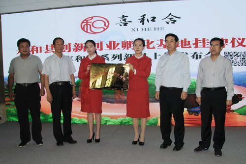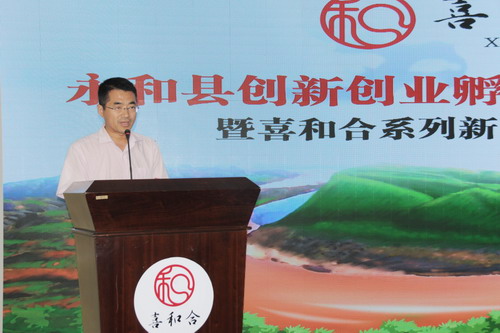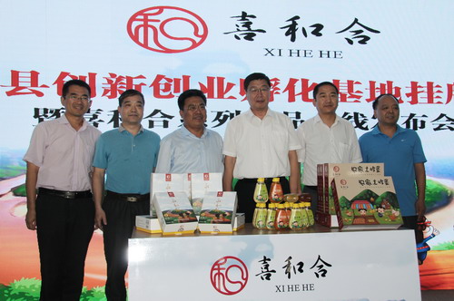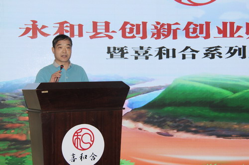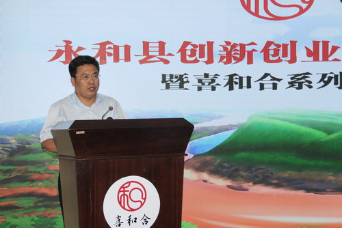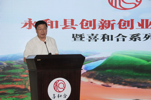 和扶贫工作队曹瑞师队长和永和县程万军副县长共同为“喜和合”系列产品揭幕,标志着“喜和合”系列产品