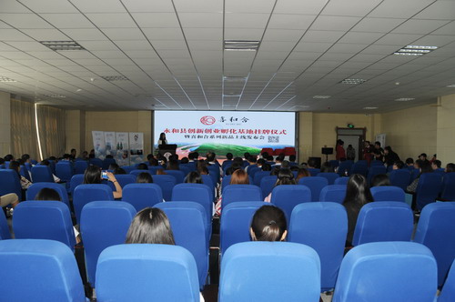 “喜和合”是我校为永和县农副产品量身定制的一个集约式品牌,从永和县选取品质最好的槐花饼、槐花蜜和土鸡蛋等农副产品授权使用,品牌命名也是从200多个品牌命名中最终确定的。此次永和县创新创业孵化基地的挂牌,旨在充分发挥双方在行业、地域、人才、智力等方面的资源优势,为大学生搭建创新创业平台,努力在永和县营造大众创业、万众创新的氛围,促进永和县的经济社会发展。