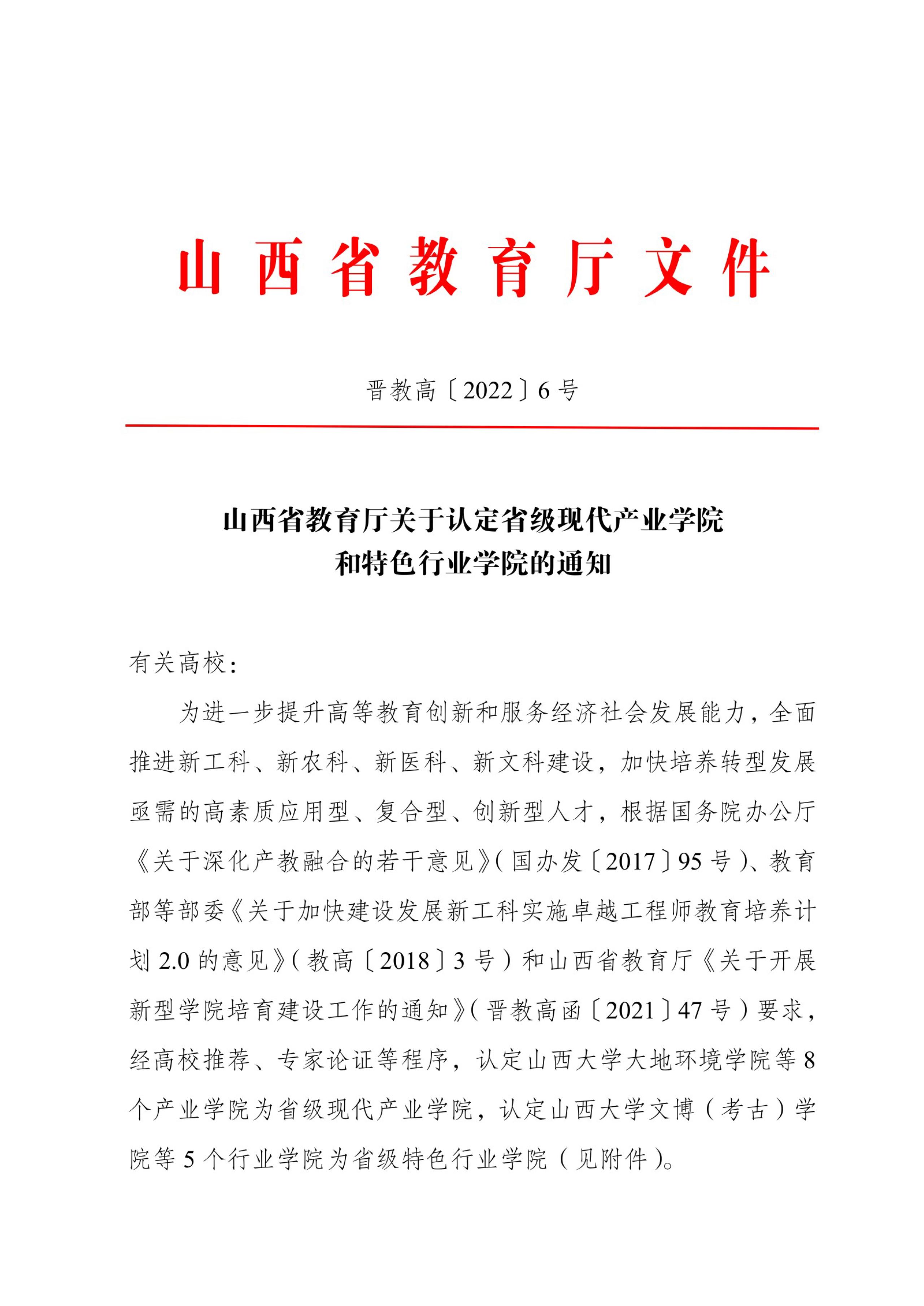 近日,山西省教育厅下发《山西省教育厅关于认定省级现代产业学院和特色行业学院的通知》,在全省范围认定8个产业学院,5个行业特色学院。我校山西电影学院被认定为省级特色行业学院。