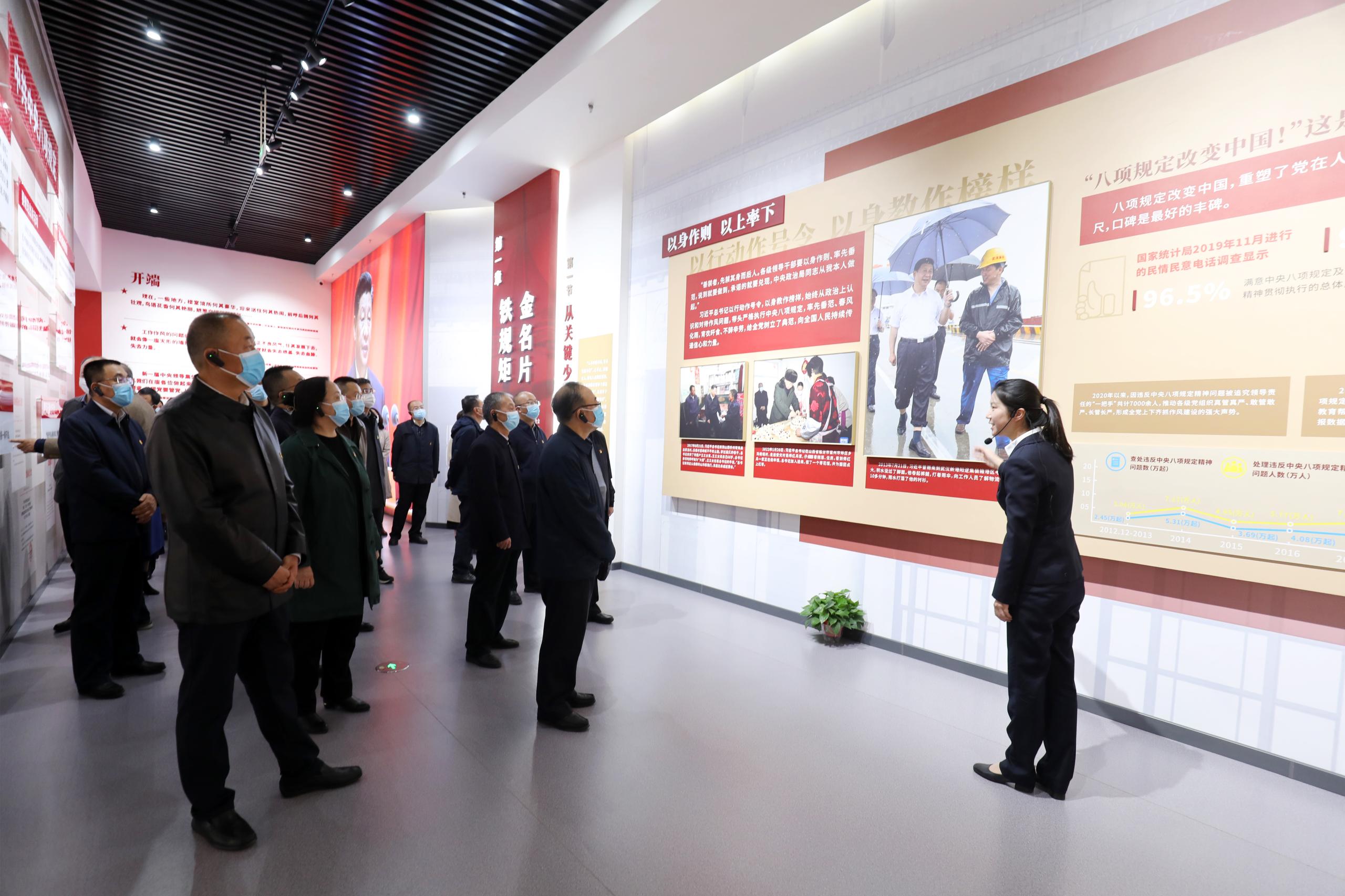 在基地展厅,大家先后参观了“铁规矩 金名片”“纠四风 治顽疾”“好作风 新征程”等展区,上百个典型案例从纠治形式主义、官僚主义、享乐主义、奢靡之风到整治群众身边腐败和作风问题;从惩治违规吃喝、违规收受礼品礼金、违规发放津补贴、公车私用等违纪行为到严查由风及腐、滑入犯罪深渊的腐败问题,用身边人、身边事警示和教育广大党员干部。一个个真实的案例,一个个痛彻心扉的悔悟,通过文字、图片以及视频的形式,生动呈现在每一个参观者的眼前,不仅给大家带来直观震撼的冲击,也给大家留下深刻警醒的思索。
