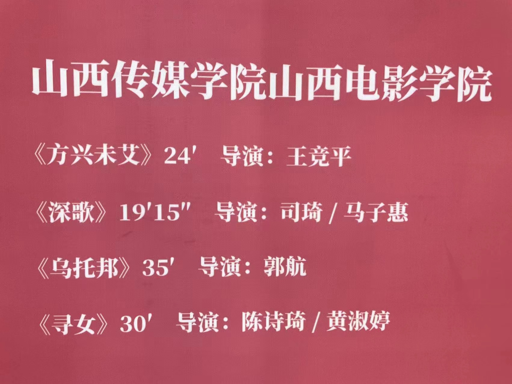 本届平遥国际电影展邀请全国高校影视艺术专业教师、学生代表,精选优质学生创作于“平遥一角”进行分享,我校有4部学生作品直接入选。入选短片均有机会角逐全场大奖“费穆荣誉·最佳短片”。