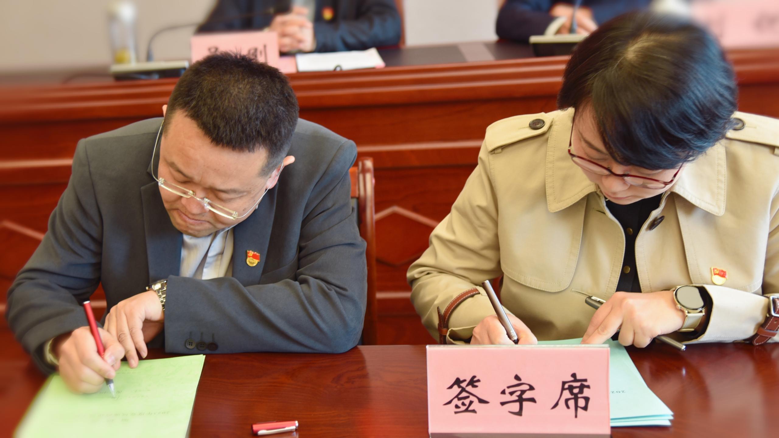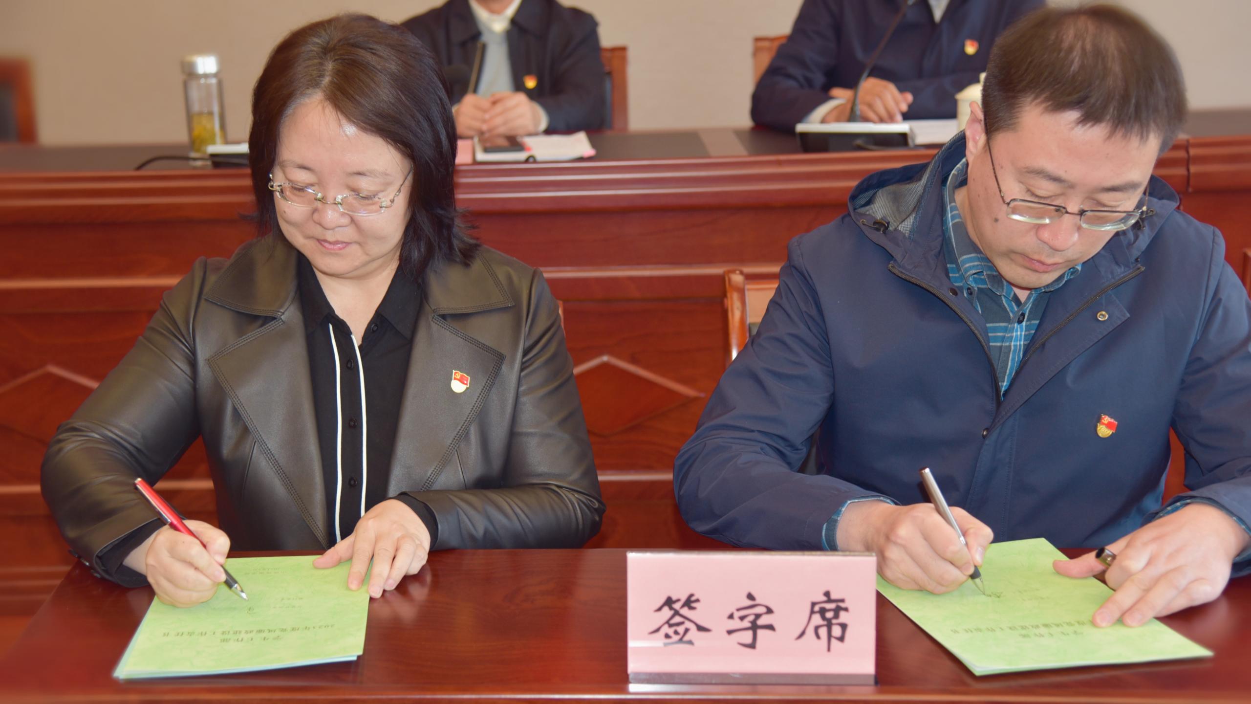 (党委副书记陈利平与组织部部长李霞签订责任书)