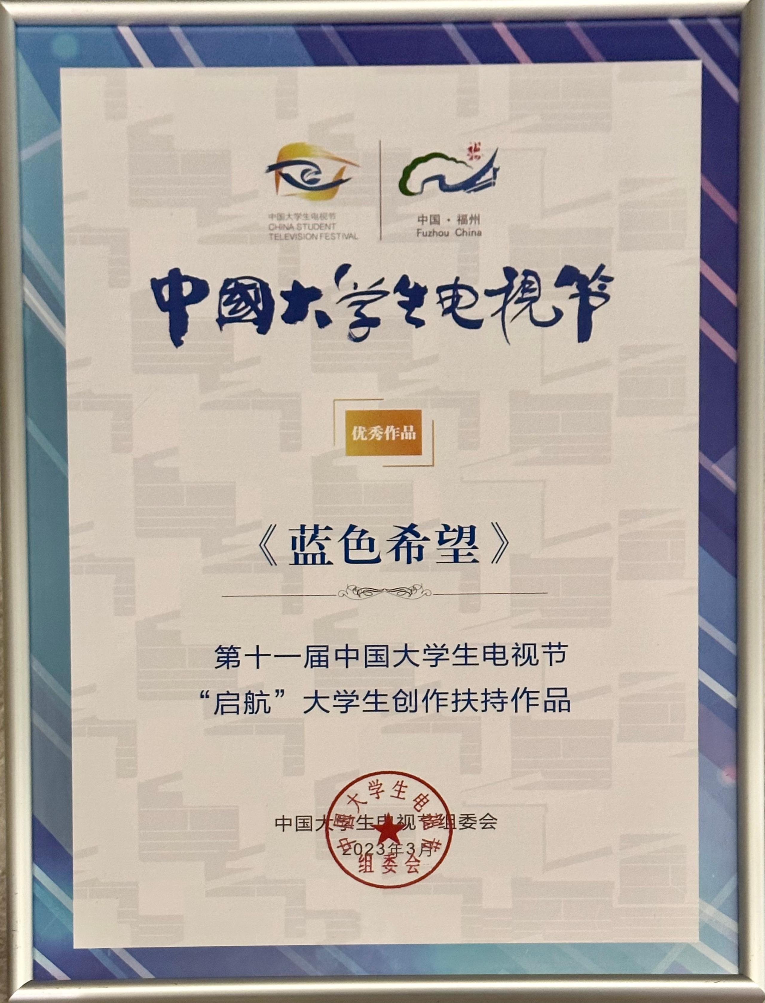 《蓝色希望》由视听学院2019级广播电视编导专业学生苏芷玉、姚梦晴、张舒燕等主创,教师秦秀宇监制,通过讲述守护海洋志愿者的故事,呼吁大家关注及参与海洋保护。