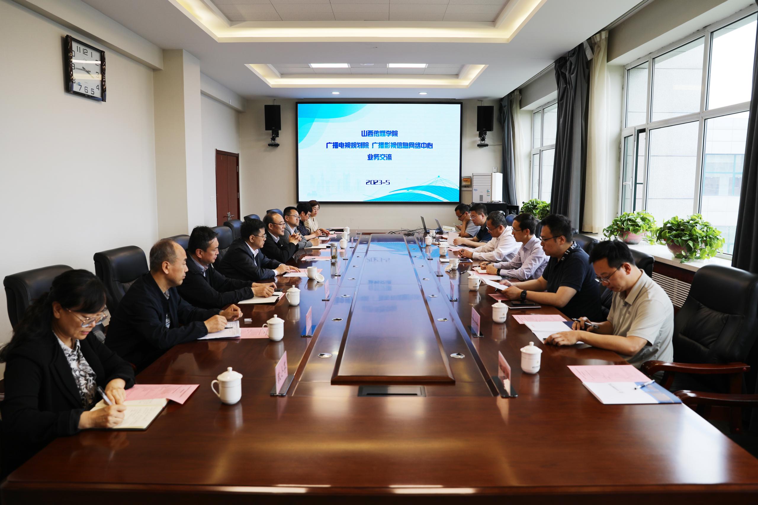5月31日下午,在山西省广播电视局安全传输保障处处长马峰的陪同下,国家广播电视总局广播电视规划院院长袁敏、标准信息研究所所长何剑辉、网络研究所副所长高力等一行七人来我校考察交流。我校党委书记吴刚,党委副书记、校长李伟,副校长庞亮,学院办公室、科研部、信息工程学院、实践教学中心主要负责人和部分教师参与交流。会议由我校党委副书记、校长李伟主持。