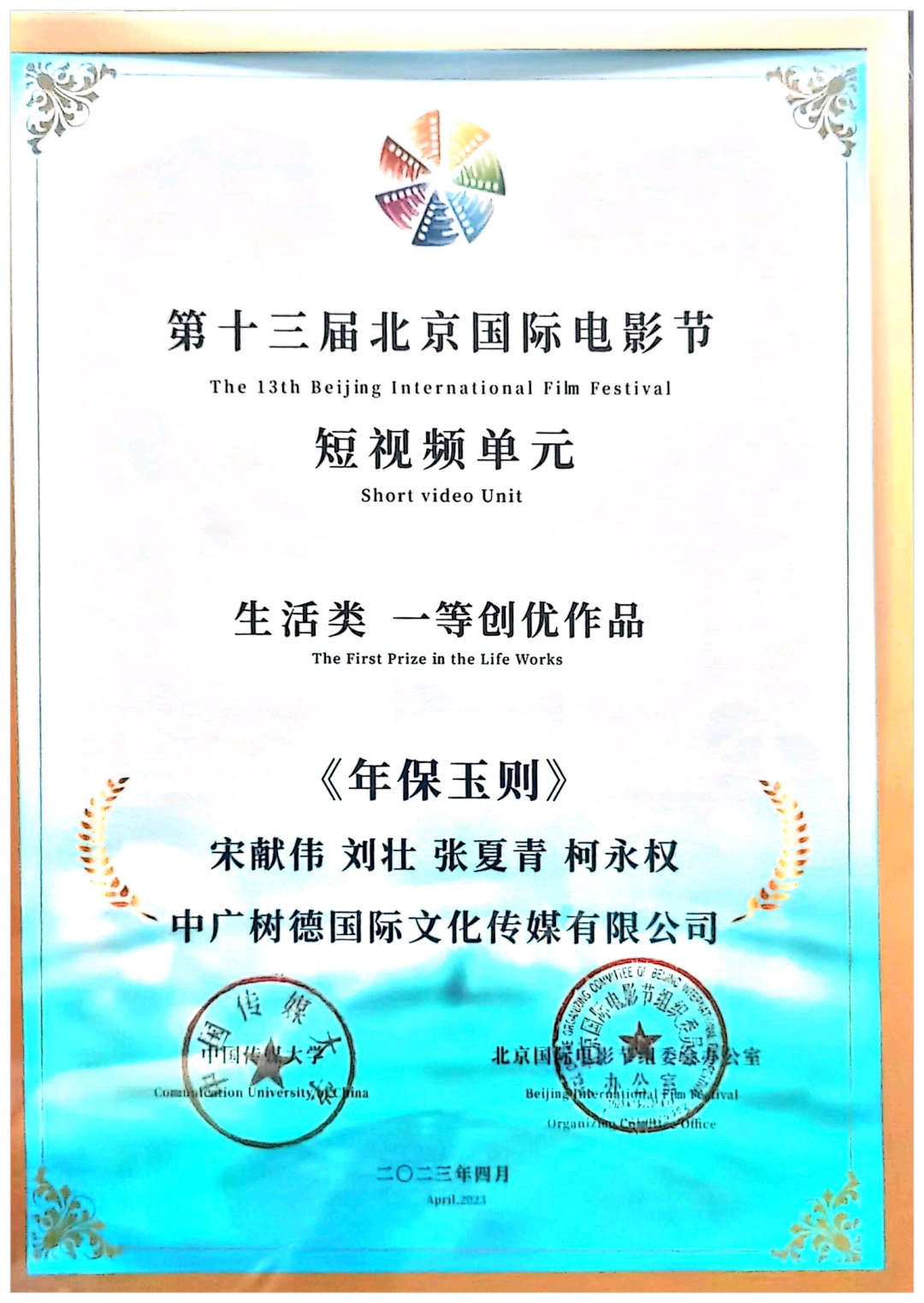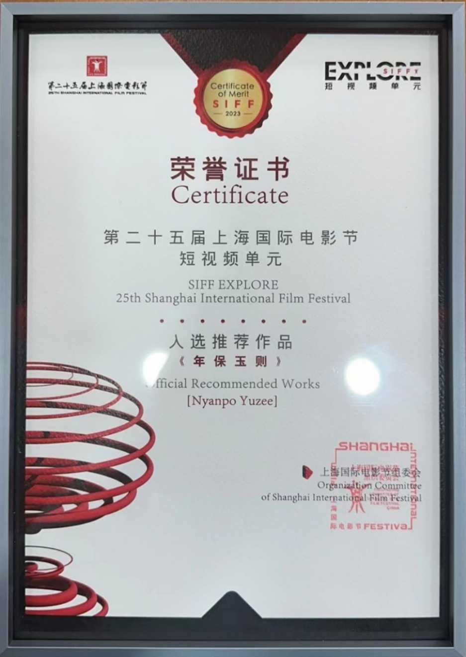 在6月16日举行的第25届上海国际电影节短视频单元特别活动上,我校视听学院宋献伟教授团队主创的短视频《年保玉则》跻身20部推荐优秀作品,这是继今年4月获得第13届北京国际电影节短视频单元生活类一等创优作品后,该片获得的又一殊荣。