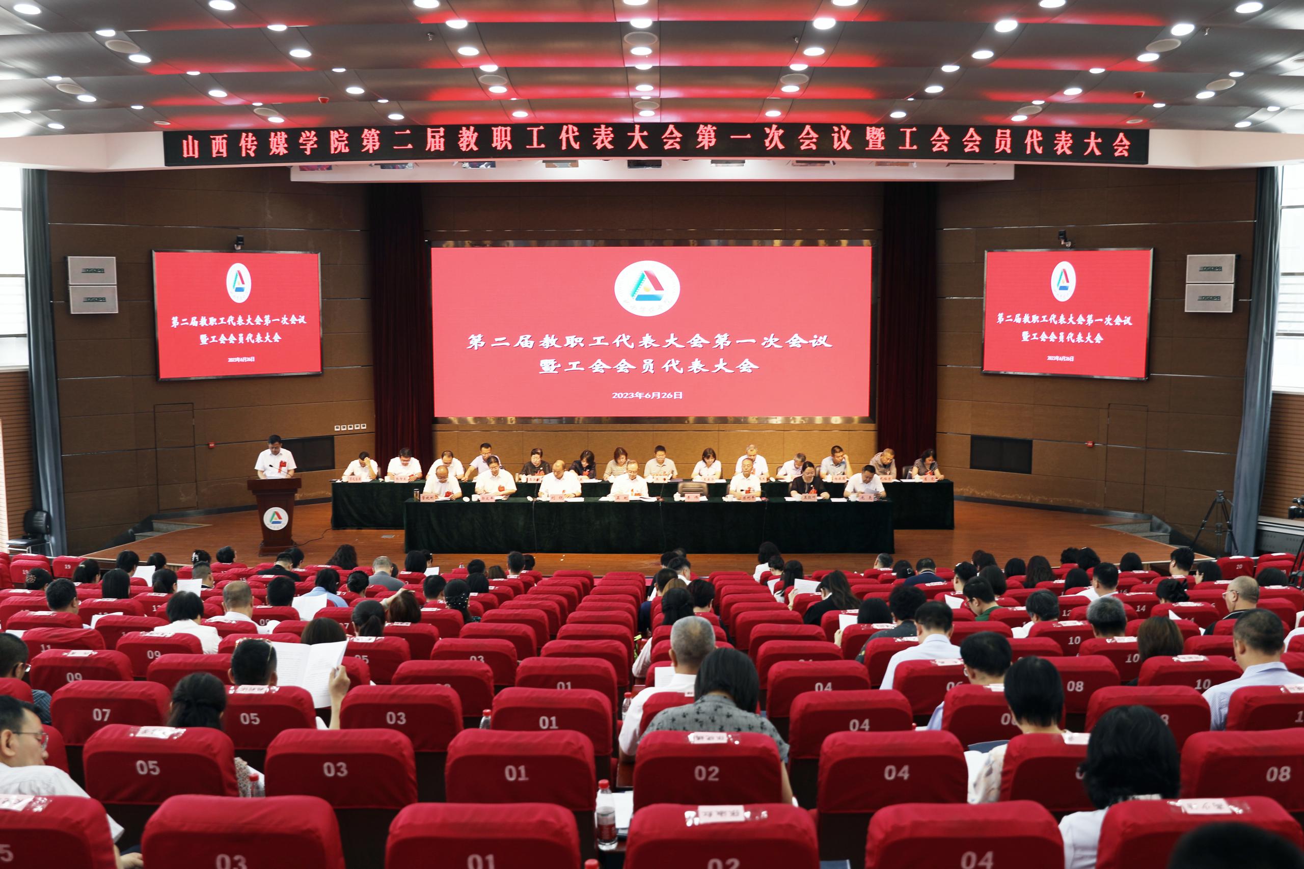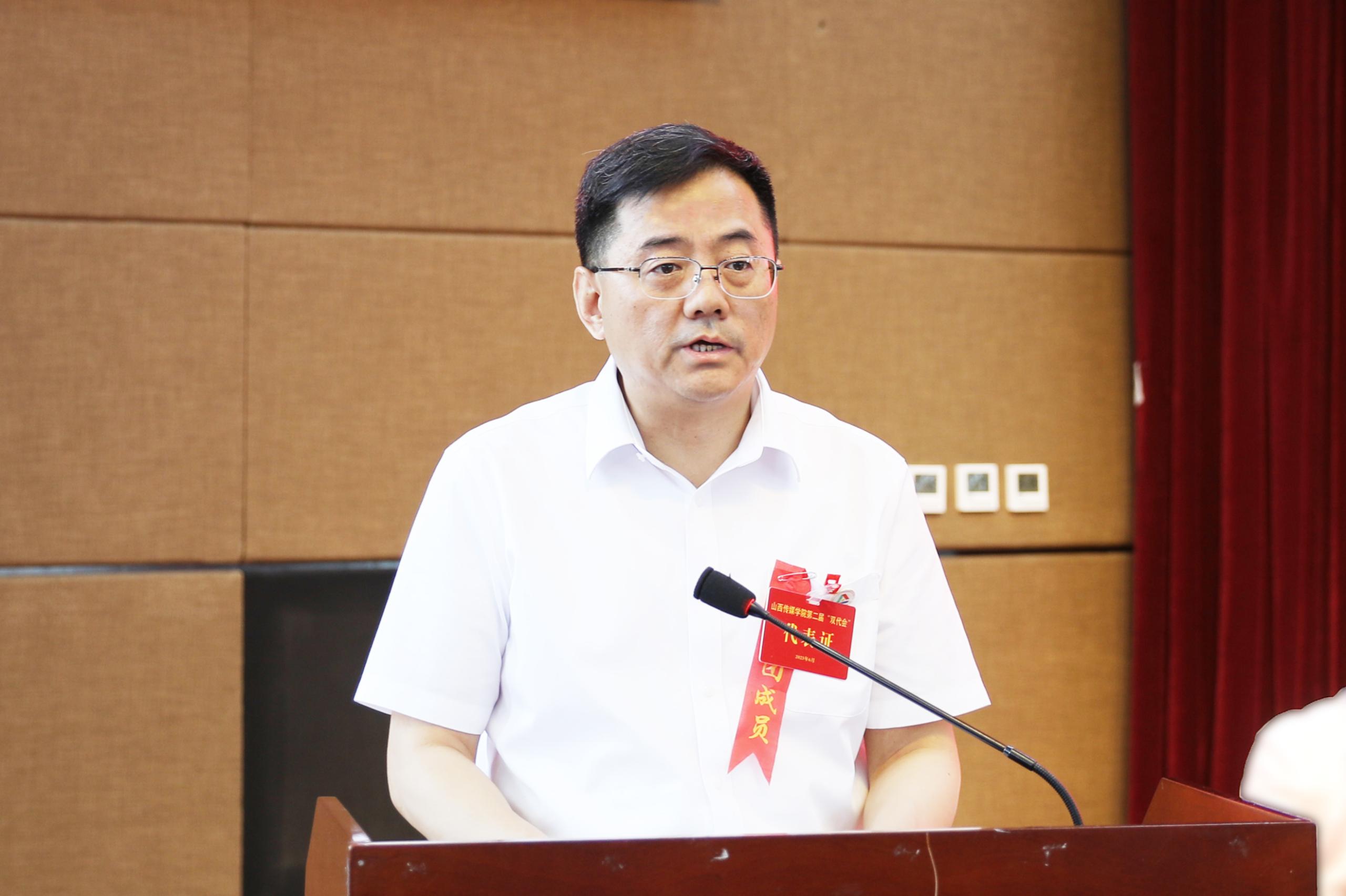 2023年6月26日,我校召开第二届教职工代表大会第一次会议暨工会会员代表大会。全体双代会代表、列席代表参加会议。山西省教科文卫体工会常务副主席尹玉平出席大会并讲话。