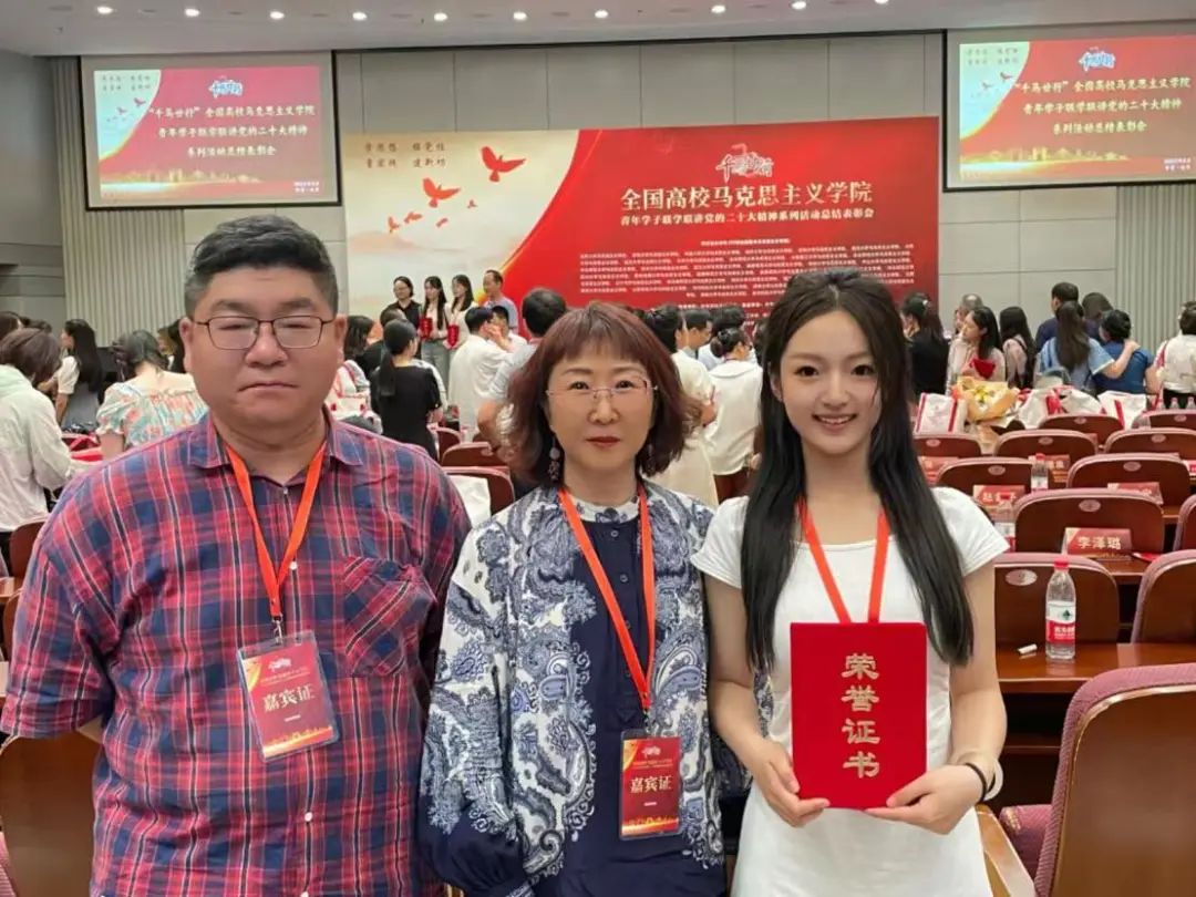6月17日,“千马廿行”全国高校马克思主义学院青年学子联学联讲党的二十大精神系列活动总结表彰会在清华大学举行,作品指导老师卢向群、王潇洋与获奖学生郭萌萌参加表彰大会。