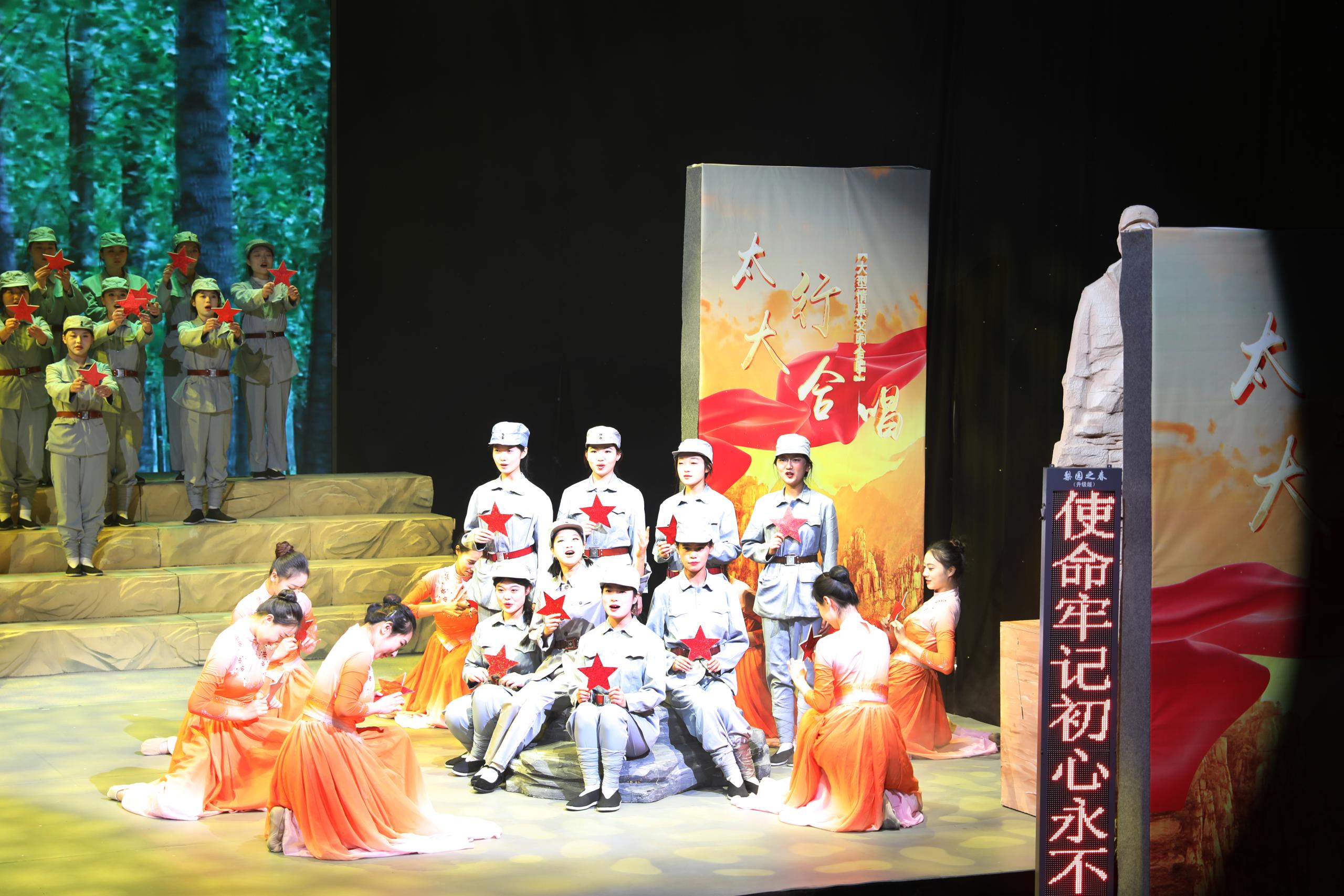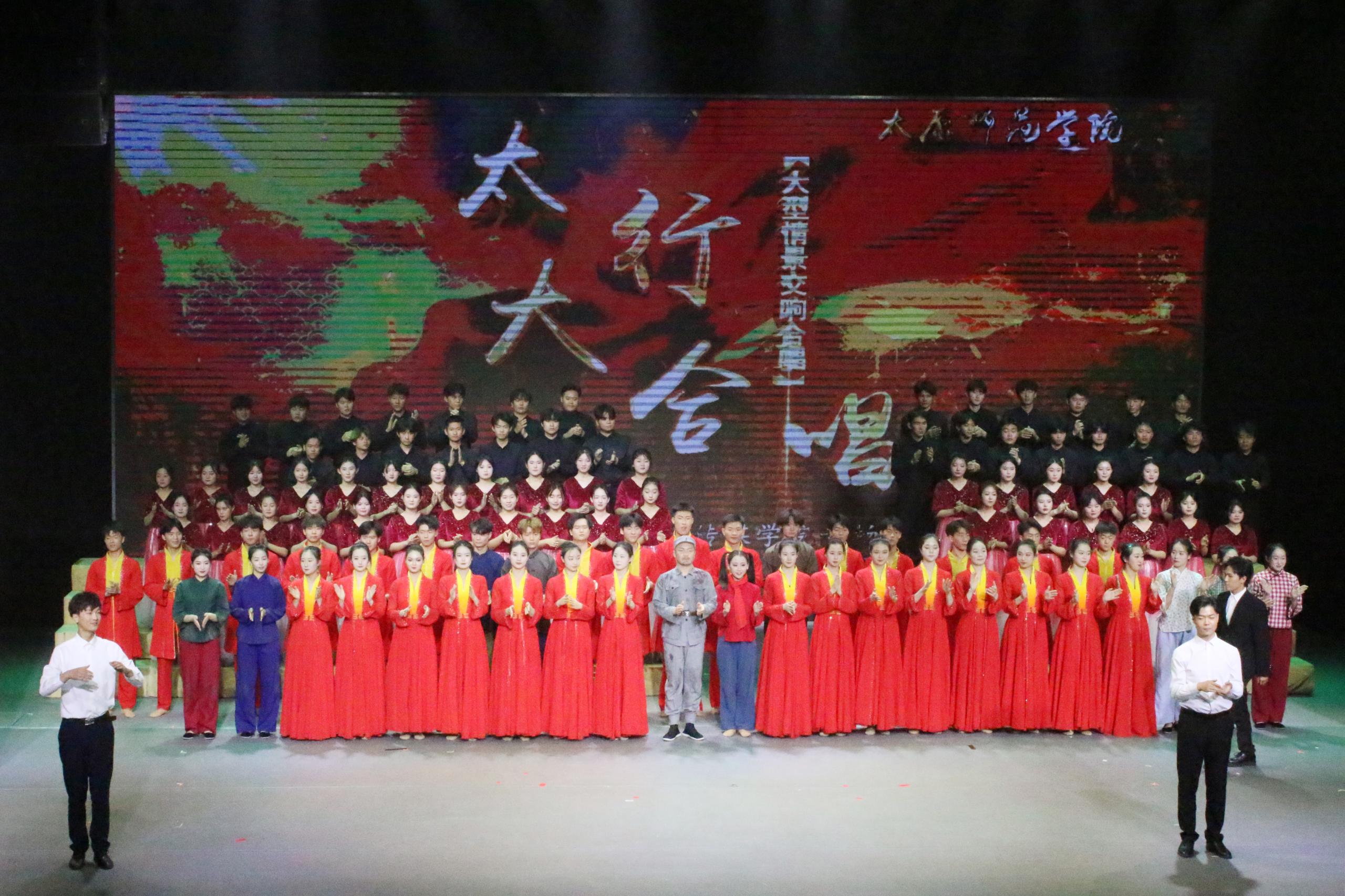 为落实“甄选三晋艺术精品 赋能高校思政教育”山西省文艺精品进高校活动,11月3日,大型情景交响合唱《太行大合唱》在我校演播中心600平米演播厅举办两场专场演出。该演出由中共山西省委宣传部指导,中共山西省委教育工作委员会、山西省教育厅支持,由太原师范学院策划、组织,师生编创、排演。