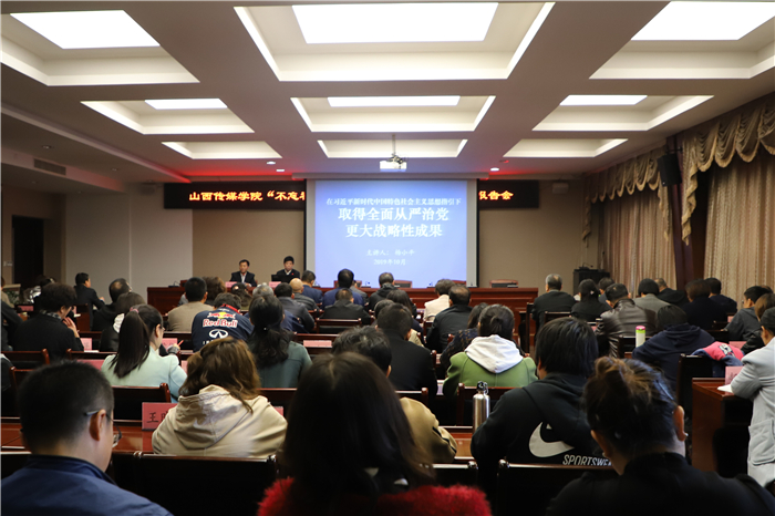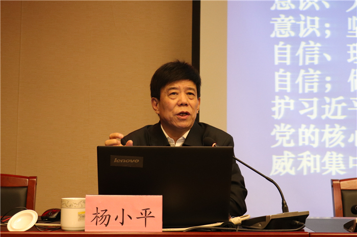为深入开展“不忘初心、牢记使命”主题教育,进一步提高政治站位,增强使命担当,推进全面从严治党,10月17日,我校举行党委理论学习中心组(扩大)学习暨“不忘初心、牢记使命”主题教育专题报告会,特邀中国井冈山干部学院特聘教授杨小平在文华楼第一会议室作了《在习近平新时代中国特色社会主义思想指引下,全面从严治党取得更大战略性成果》的专题辅导报告。党委副书记陈利平主持报告会,纪委书记姚培林、副院长武升平、郭卫东及党委理论学习中心组成员、全体处级干部、各党总支书记、党支部书记参加学习。